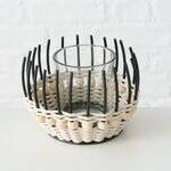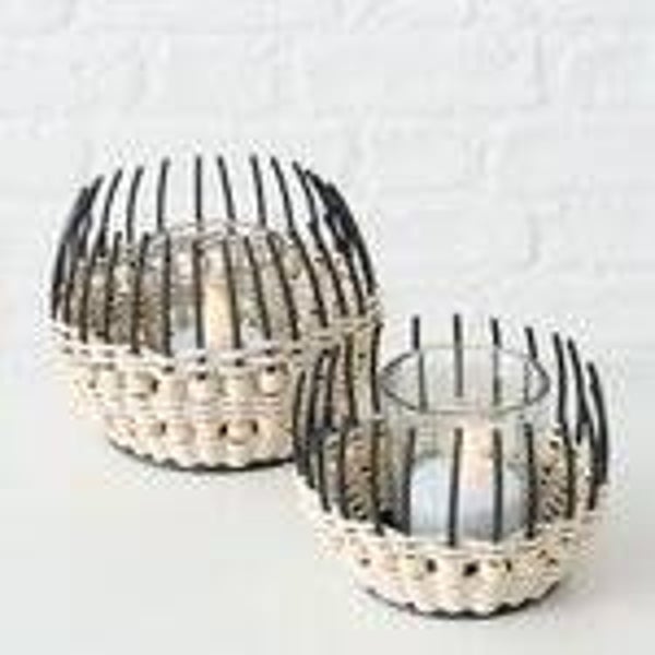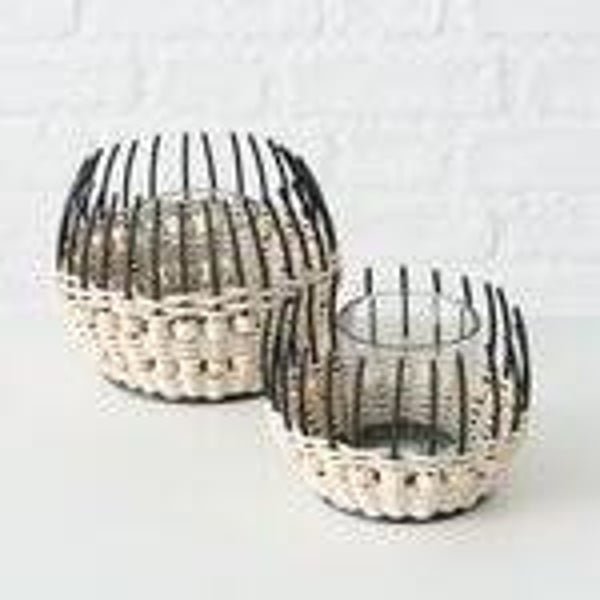 Set 2, Rond, H 7,5-9,5 cm, Schima (Theaceae), Fer laqué, Verre clair, Coton, Multicolore matière melangée coleur-mix